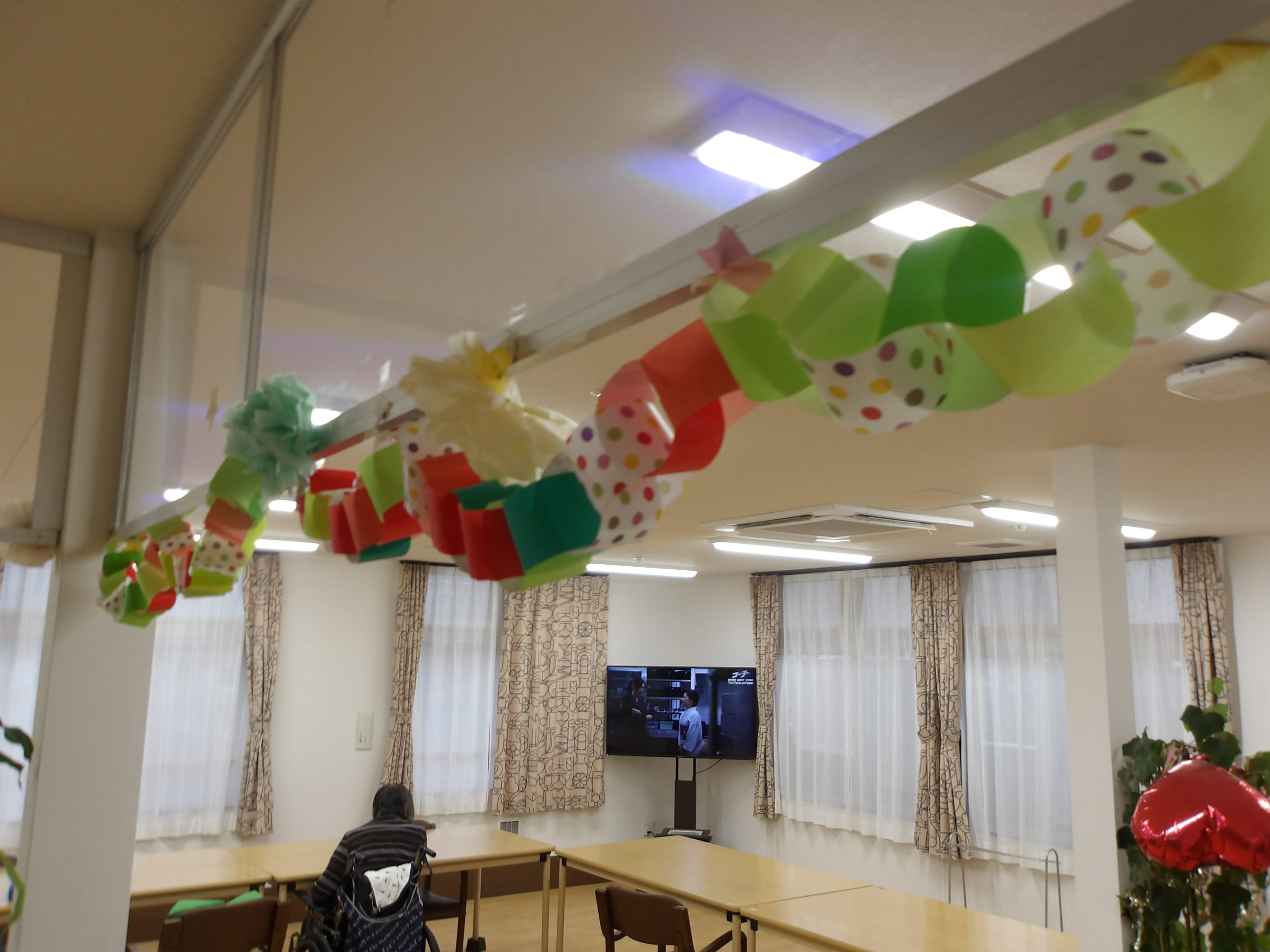 ともしびでは、空気の乾燥対策として加湿器を出し、暖房と換気で温度調整に加え感染症対策も実施しています。