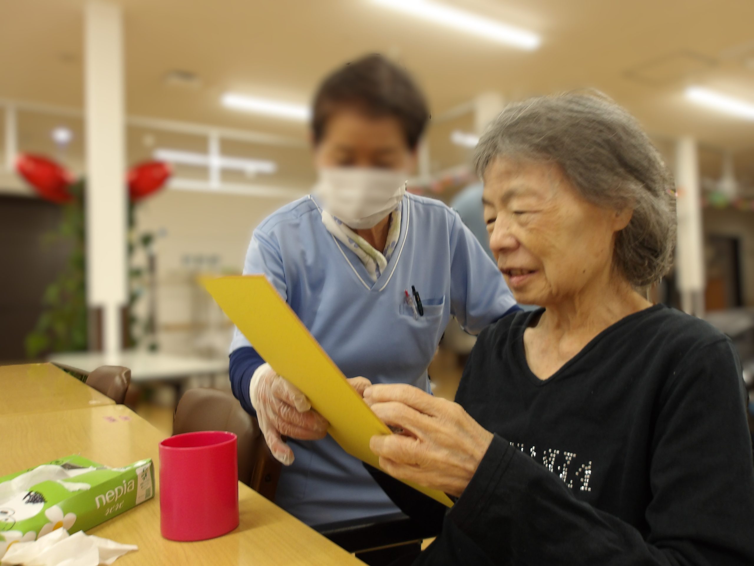 他の入居者様と一緒に歌を歌って拍手をして、、